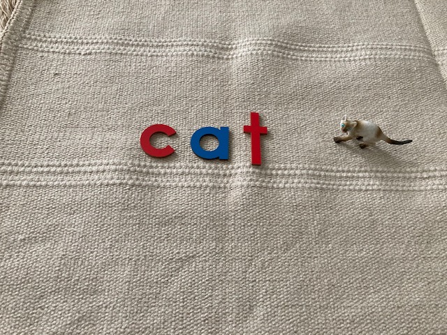 Sounding out ‘cat’ with movable alphabet and object