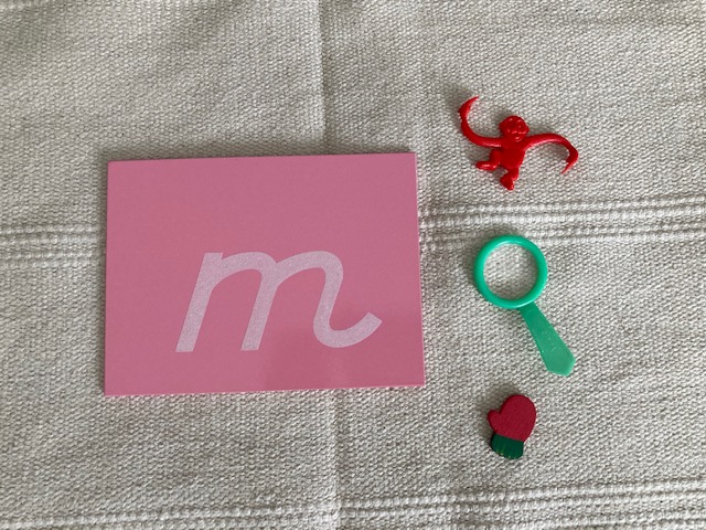Sandpaper letter ‘m’ with Objects