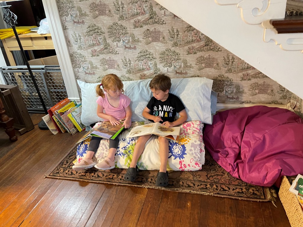 With the books chosen, the children get to read it in their Reading Nook at Little Lea or be read to during the day. Every day, during lunch hour, the children know that a few books from their pile from the library get chosen to be read while they are eating.