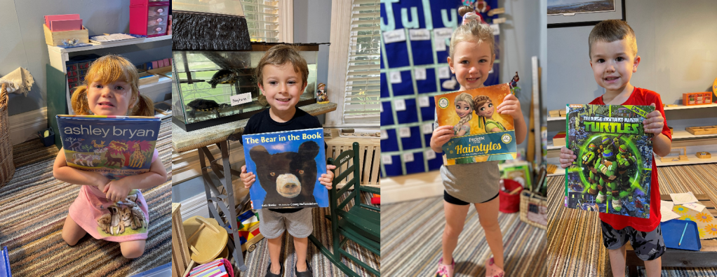Writing is introduced simultaneously as the sandpaper letters are already training the child’s hand to form the letters. Tracing metal insets, using a stylus to trace letters, making playdough rope letters, using his fingers to write in sand all contribute to the child’s success in learning to write. Additionally, many areas in the classroom focus on fine motor skills and the development of the pincher grasp needed to hold a pencil. Eventually the child is ready to hold the pencil and begin writing letters and words, from which written language naturally flows. The Montessori environment is rich with language, vocabulary and all kinds of books to entice young learners to be intrinsically motivated to master the skills of reading and writing.